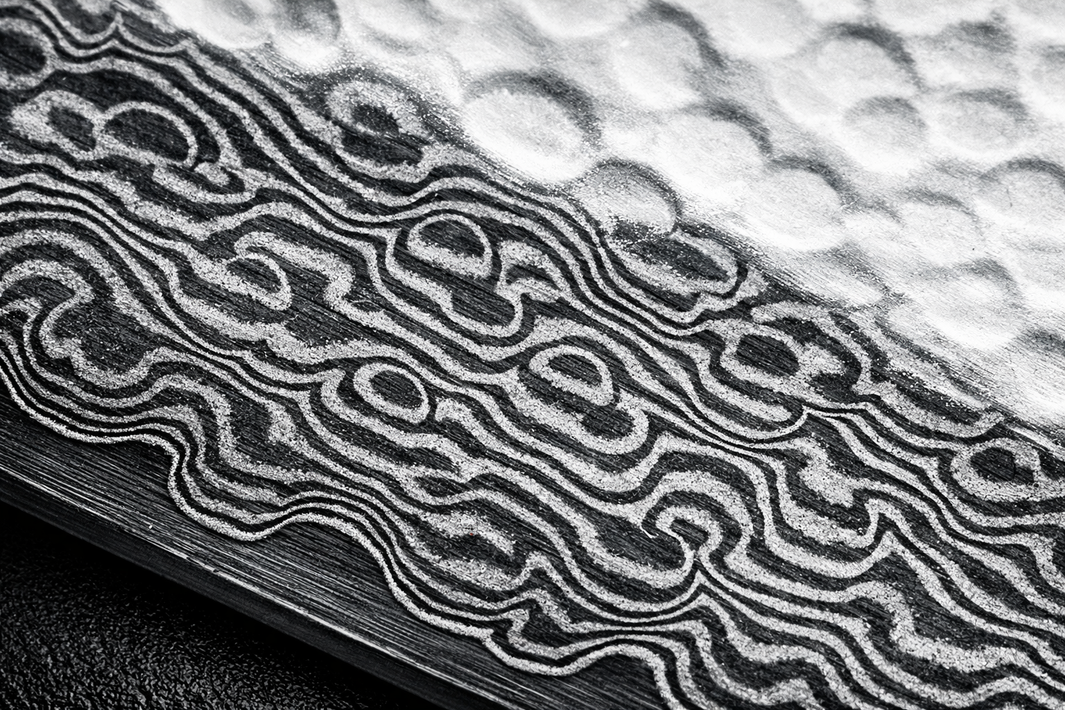 Layered steel naturally patterned through hammering